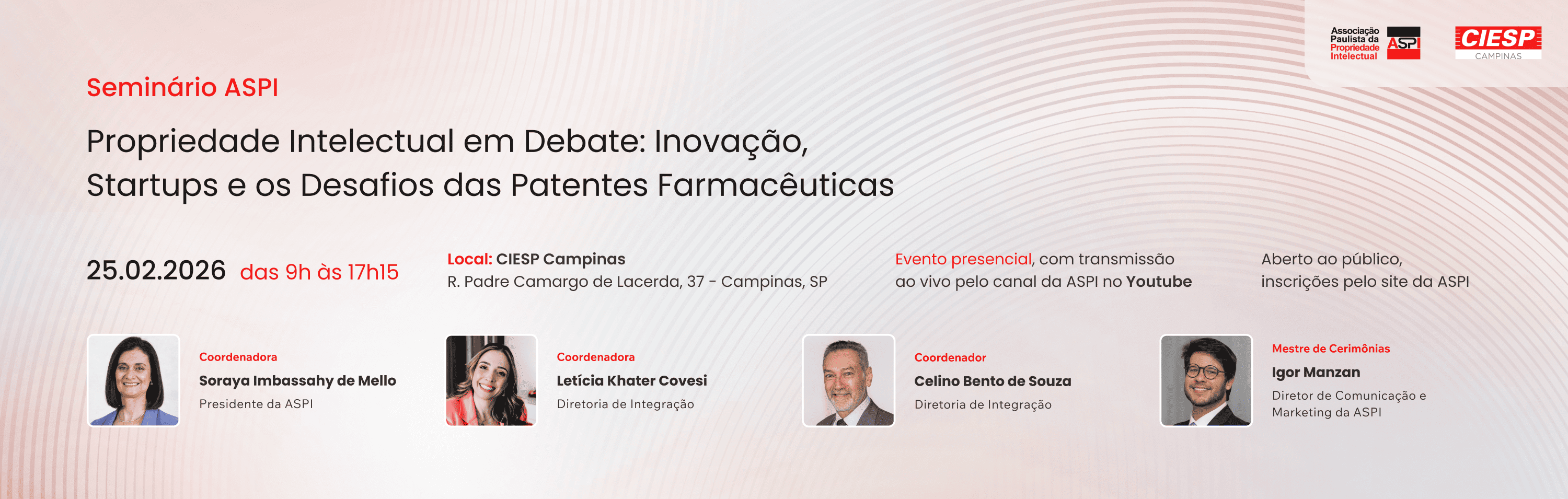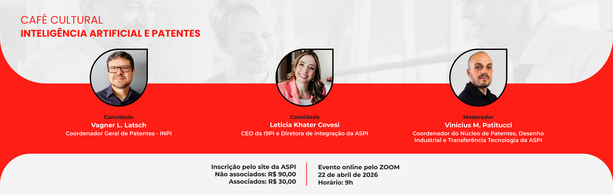 É com alegria e entusiasmo que iniciamos o Biênio 2025/2027 da ASPI. Nossa gestão nasce comprometida em fortalecer o sentimento de pertencimento associativo, ampliar a participação e impulsionar iniciativas que valorizem a Propriedade Intelectual no Brasil e no mundo.